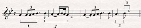 דומה, אלא שנראה כי var. 2 מגשרת בין var.1 והנושא כאשר משלבת בתוך תת הפראזה את מוטיב 4