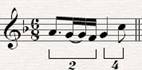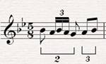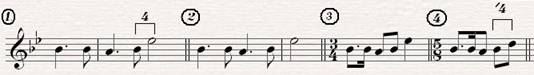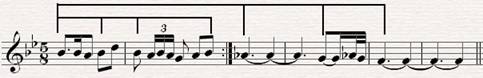 מורחבת של המוטיב הכוללת את הצליל האחרון בתיבה השניה של הנושא. בדומה לכיווץ של